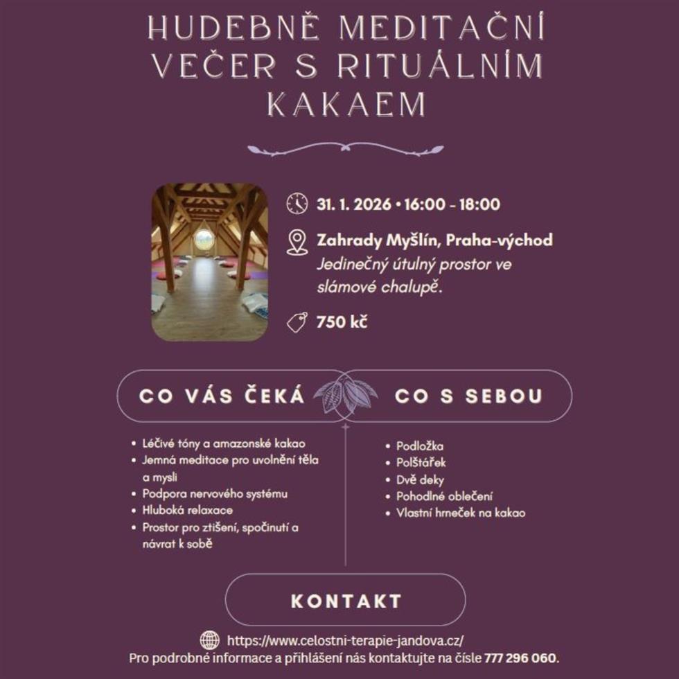 Hudba zde není jen doprovodem – je lékem. Zvukové vibrace působí na tělo, nervový systém i emoce, přinášejí úlevu, uklidnění a hlubší koncentraci. Přijďte si vyzkoušet uvolňovací a dechová cvičení a vědomě meditovat!